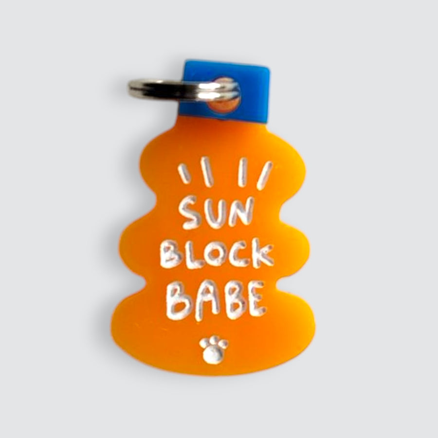 Keep your pet stylishly protected with the "Sun Block Babe" charm. This charm features a vibrant sunblock bottle, emphasising the importance of sun protection during those sunny summer days. It's a chic reminder to shield your furry friend from harmful rays.