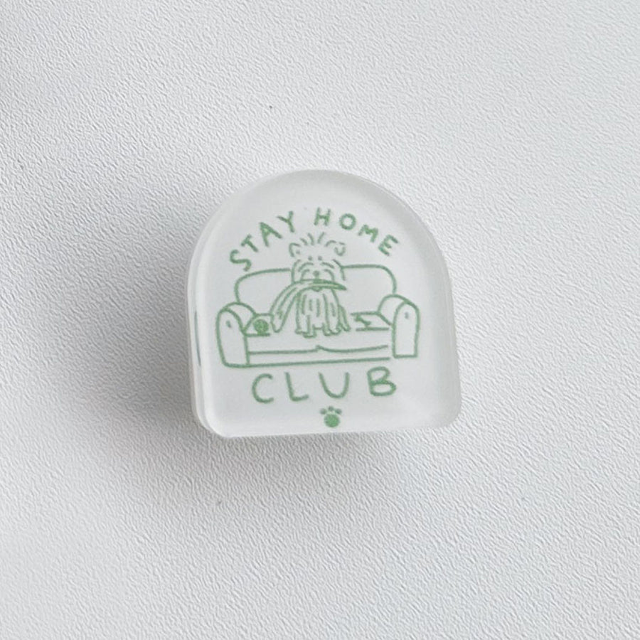 Charm up your shoes with the "Stay Home Club" charmbitz, featuring a dog chilling on a cozy sofa. It's a whimsical reminder that even when staying indoors, your furry friend can embrace the laid-back, vacation mindset.