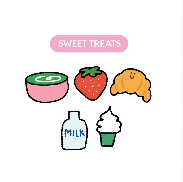 • Sweet Treats: matcha, strawberry, croissant, milk, and ice cream